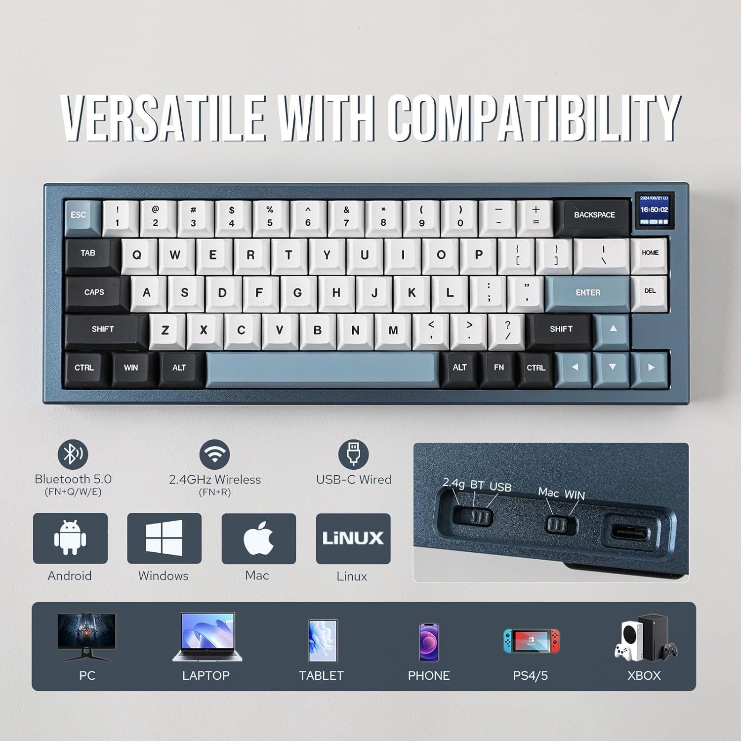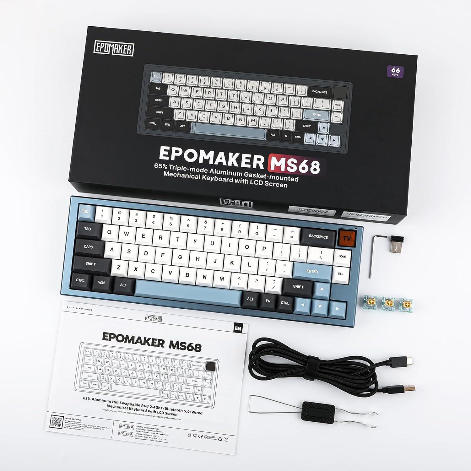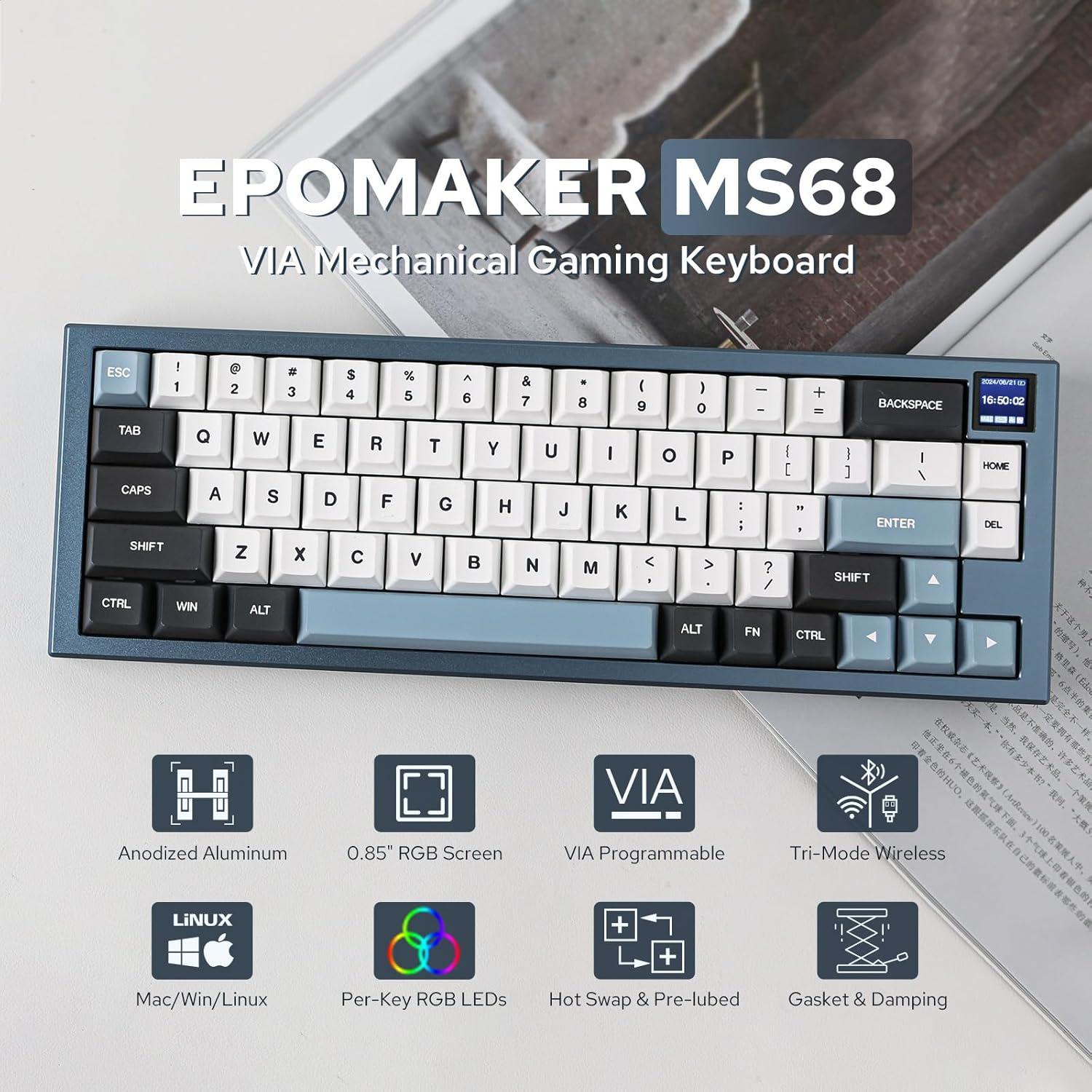 【Tri-Mode Connectivity】Experience versatile connectivity with the EPOMAKER MS68, featuring wired, 2.4GHz wireless, and Bluetooth modes. The 3000mAh battery ensures long-lasting performance, making it ideal for both desktop and portable use.