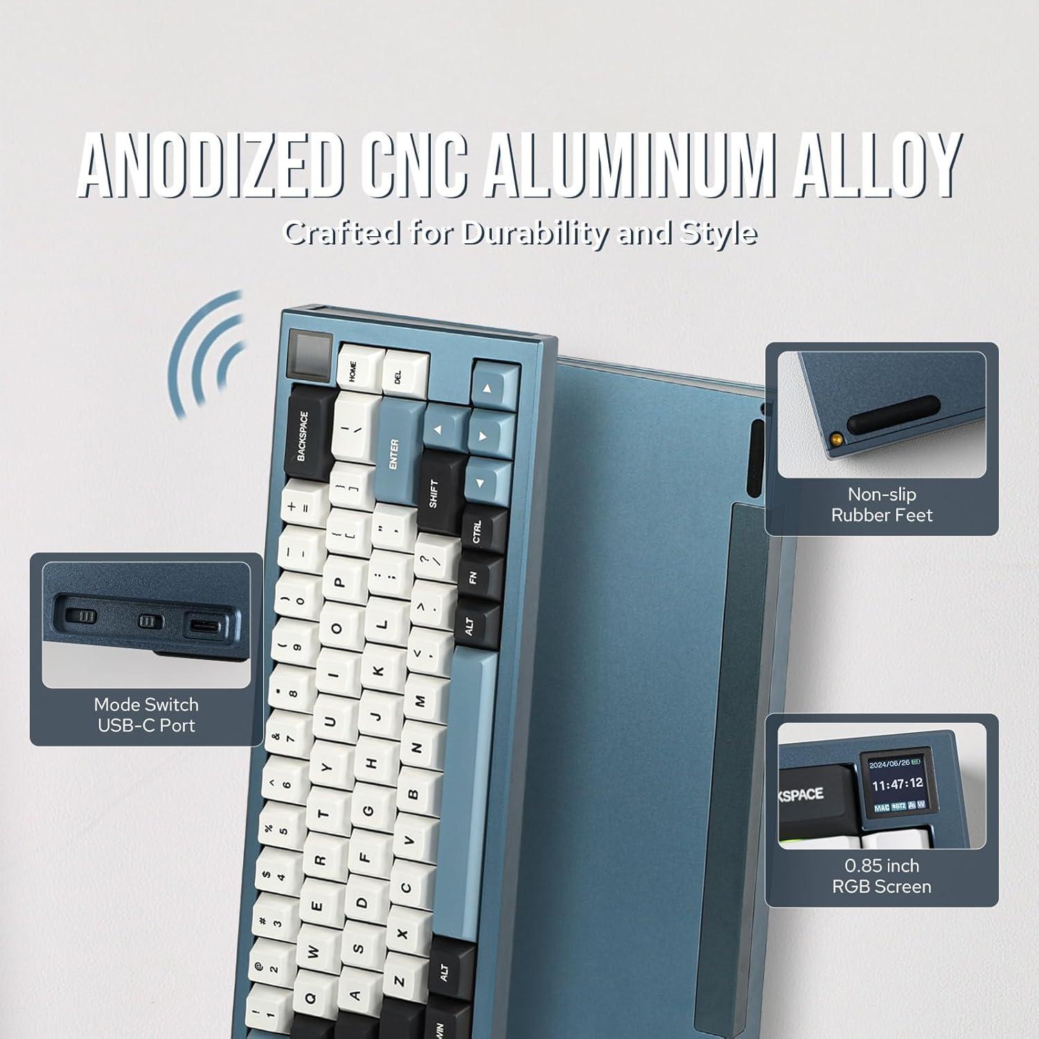 【Refined Anodized Aluminum Case】The EPOMAKER MS68 features a sturdy aluminum case with an anodized surface treatment, offering vibrant colors and enhanced corrosion resistance. This process creates a hard, wear-resistant layer that protects the underlying aluminum, ensuring long-lasting durability and a refined appearance.