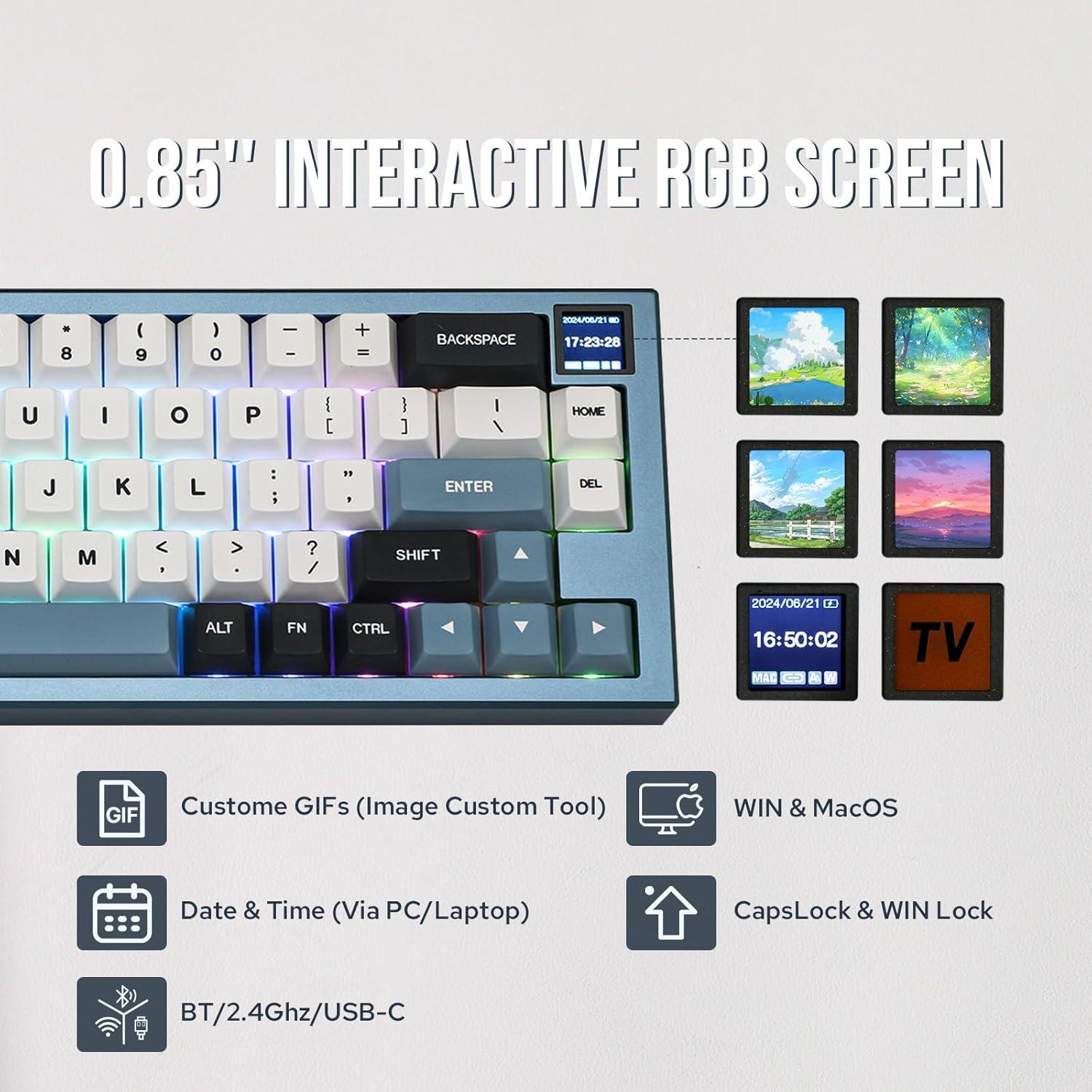 【0.85 Inch TFT Screen】The MS68 is equipped with a 0.85-inch TFT screen located in the top right corner. This customizable display allows you to showcase GIFs, monitor battery status, display the date and time, and view connectivity and OS information. This adds a personal touch and keeps you informed at a glance, enhancing both functionality and aesthetics.