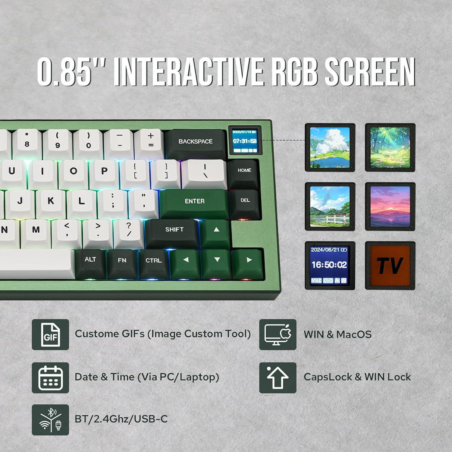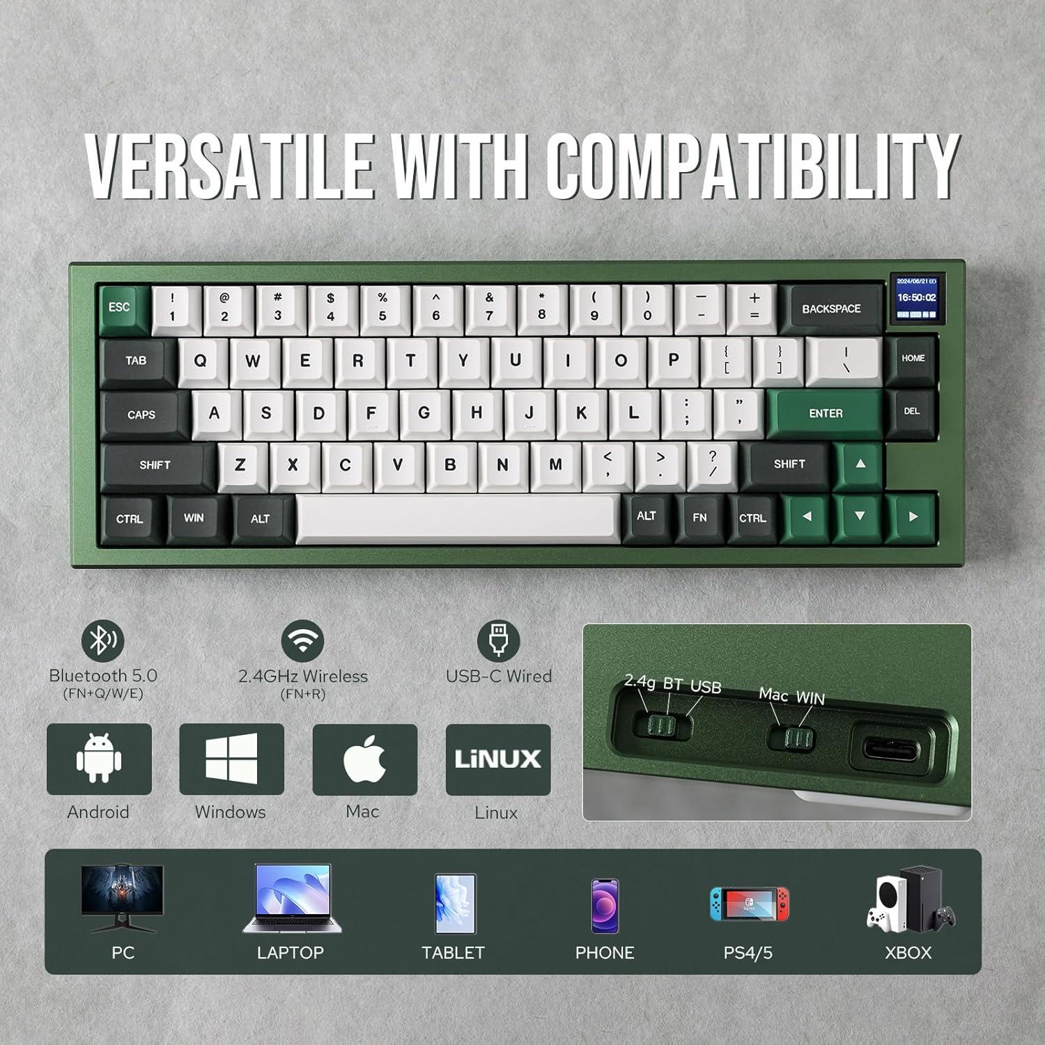 EPOMAKER MS68 Wireless Gaming Keyboard with 0.85” Screen, CNC Aluminum Alloy Mechanical Keyboard, Bluetooth 5.0/2.4ghz/Wired, Hot Swappable (Green, Sea Salt Silent Switch)