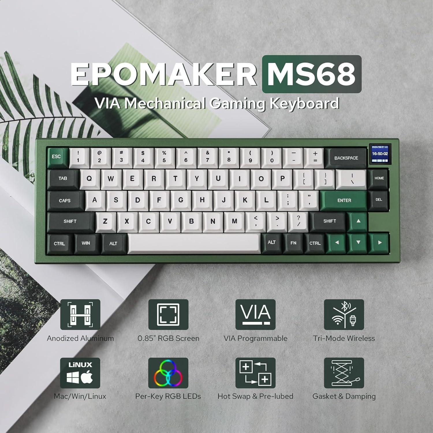 Be the first to review “EPOMAKER MS68 Wireless Gaming Keyboard with 0.85” Screen, CNC Aluminum Alloy Mechanical Keyboard, Bluetooth 5.0/2.4ghz/Wired, Hot Swappable (Green, Sea Salt Silent Switch)”