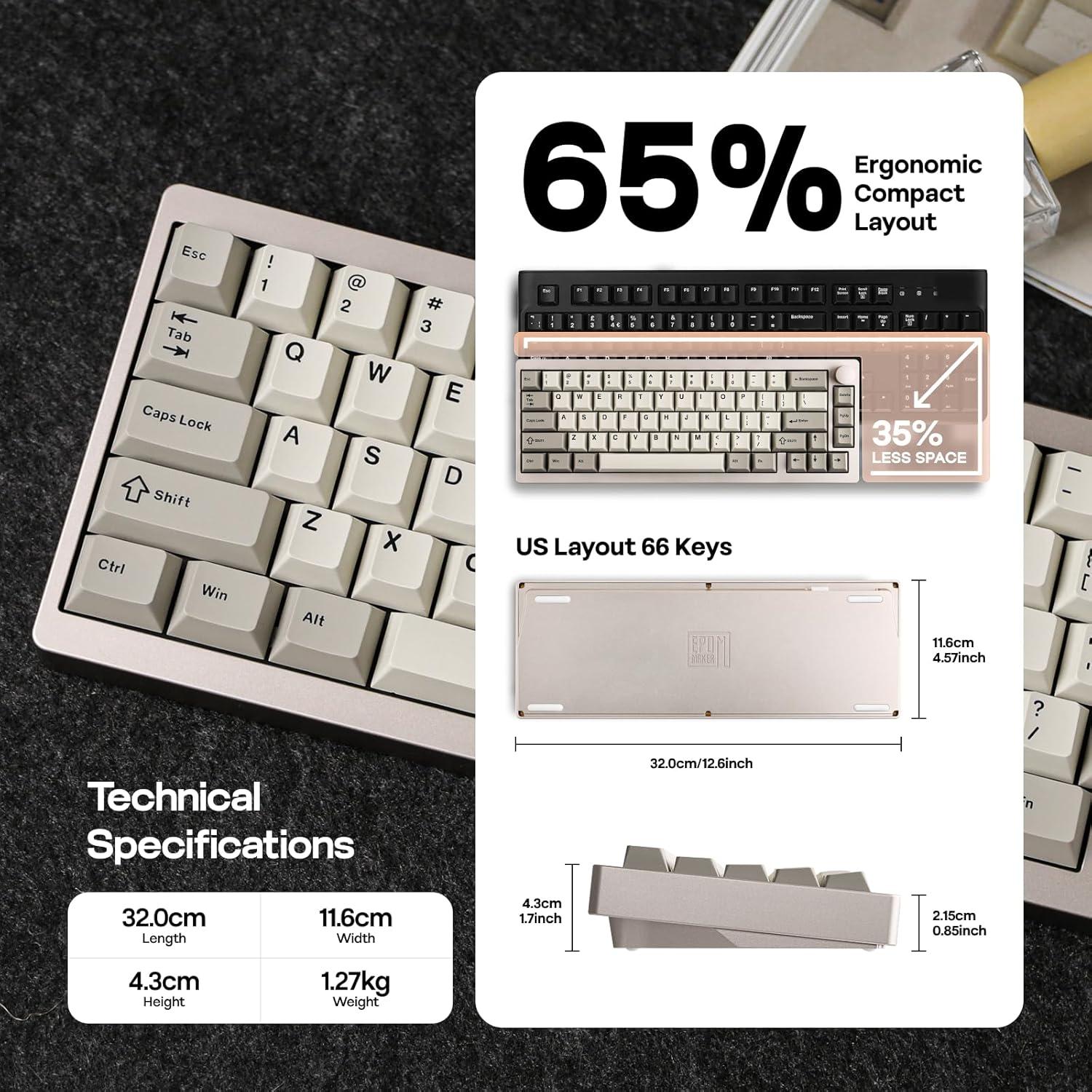 Mechanical Gaming Keyboard: Elevate your gaming and typing experience with the EPOMAKER P65 QMK/VIA Wireless Aluminum Gaming Keyboard. Designed for both aesthetics and performance, this compact 65% layout keyboard features a silver glossy knob for quick multimedia access, making it perfect for gamers and minimalists alike. Its durable CNC aluminum build ensures longevity while the customizable QMK/VIA programmability allows you to tailor the layout and macros to fit your unique workflow. With multiple connectivity options and vibrant RGB backlighting, the EPOMAKER P65 is not just a keyboard; it’s a powerful tool that enhances productivity and provides an immersive gaming experience