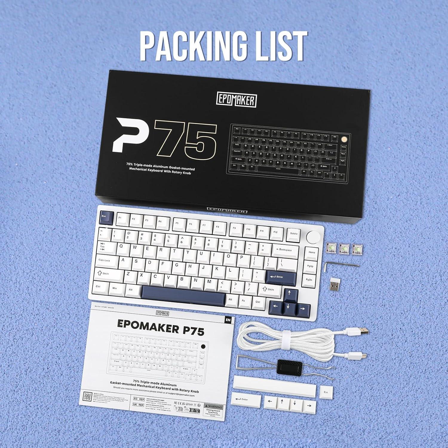 【Tri-mode Connection Keyboard with 4000mAh Battery】Stay connected with the EPOMAKER P75’s tri-mode connectivity. Whether you prefer wired, 2.4GHz wireless, or Bluetooth connections, this keyboard has you covered. Its 4000mAh battery ensures a long-lasting wireless experience, so you can focus on your tasks without constantly worrying about recharging