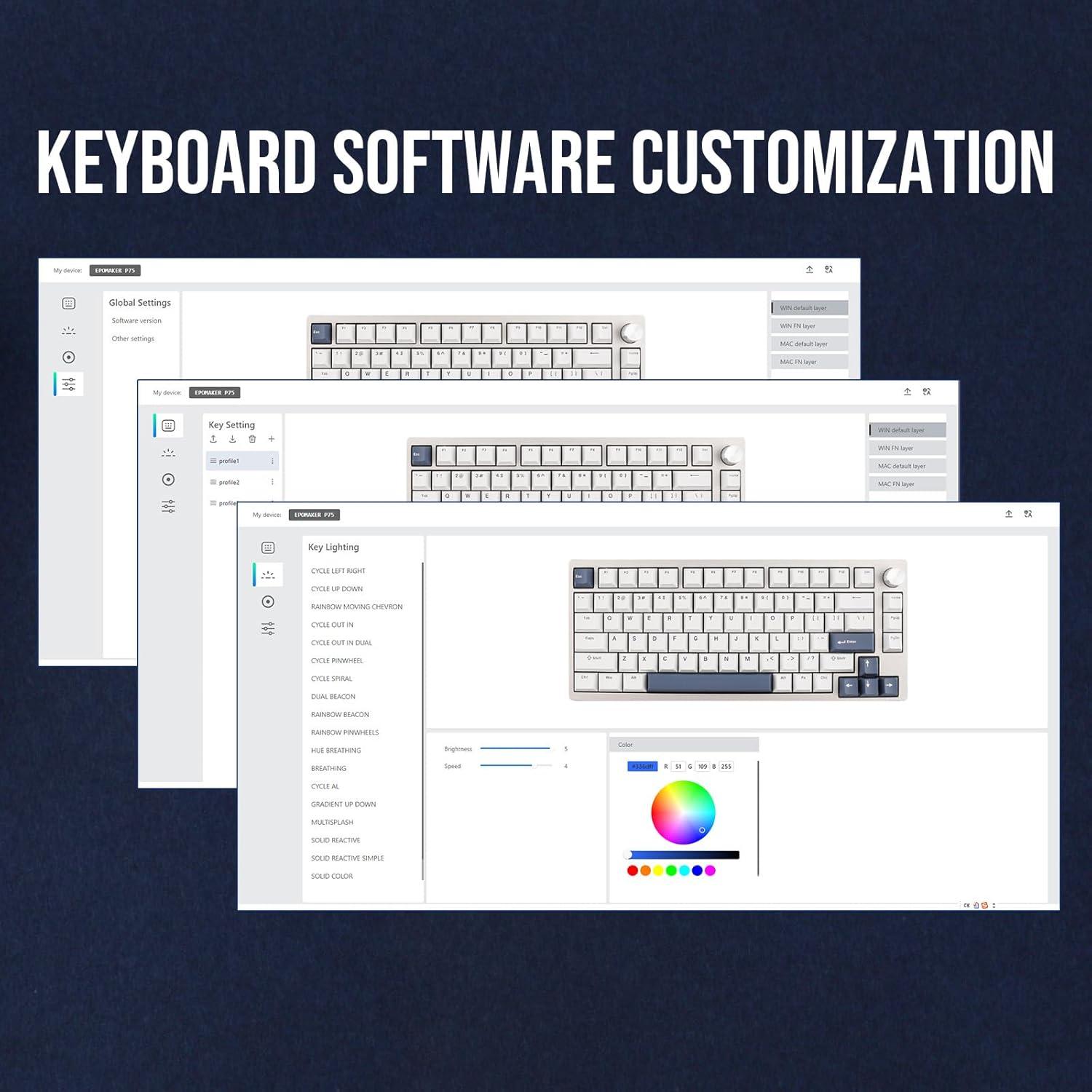 【Hot Swappable PCB with Screw-in Stabilizer Support & South-Facing RGB】The P75 comes with a hot-swappable PCB, allowing easy switch changes without soldering. The default plate-mount stabilizers are finely tuned for an excellent out-of-the-box experience. For those who prefer screw-in stabilizers, the P75’s PCB supports this option, catering to customization enthusiasts. The south-facing RGB backlighting shines through from the south side (near the typist) of the switch, making it easier to see the RGB backlight with non-shine-through keycaps.