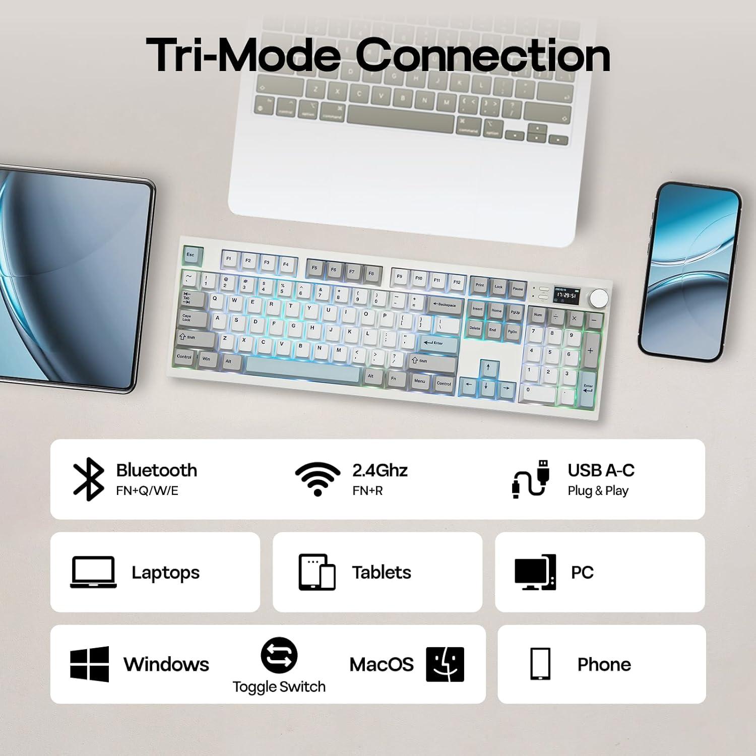 Tri-Mode Wireless Keyboard for WIN/Mac