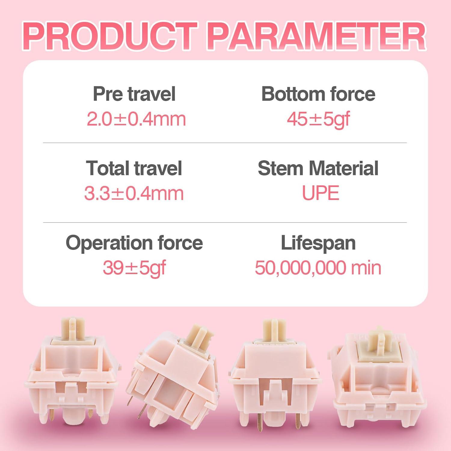imageEPOMAKER Silent Mechanical Keyboard Switches Set  35 Pieces Factory PreLubed 5Pin LinearTactile Switches for Custom Mechanical Keyboards CrystalTactile SilentNude RosaLinear Silent
