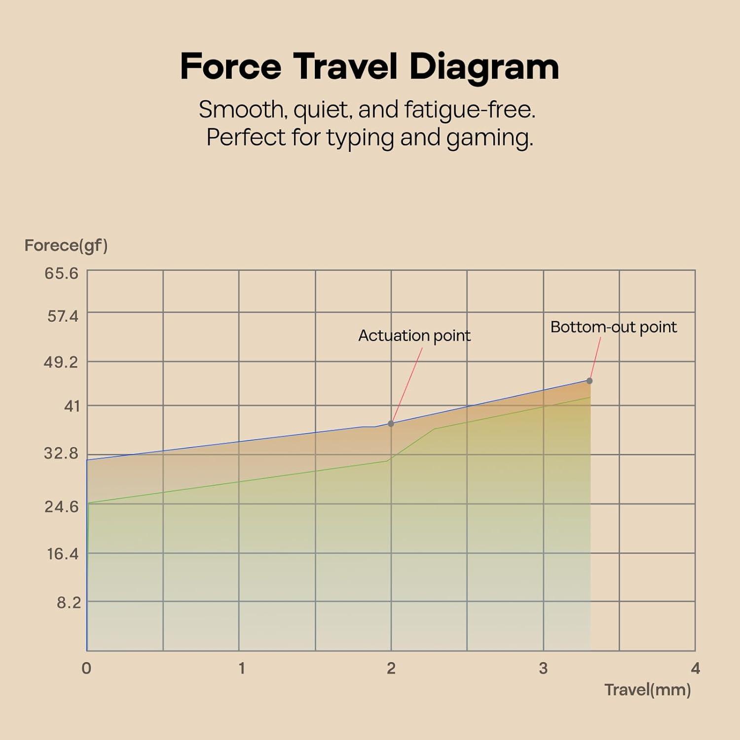 Designed for Silent Gaming: Unlike traditional mechanical switches that produce loud clicking sounds, the Sorane Silent Switch is designed to minimize noise, providing a silent typing and gaming experience. This is perfect for those who prefer a quieter environment, especially in late-night gaming sessions or in shared offices. The Sorane switch activates with a light force of 39gf and a travel distance of 2.0mm, and bottoms out at 45gf with a travel of 3.3mm, thereby alleviating finger strain from heavy trigger forces, making even extended typing sessions at work a pleasant experience.