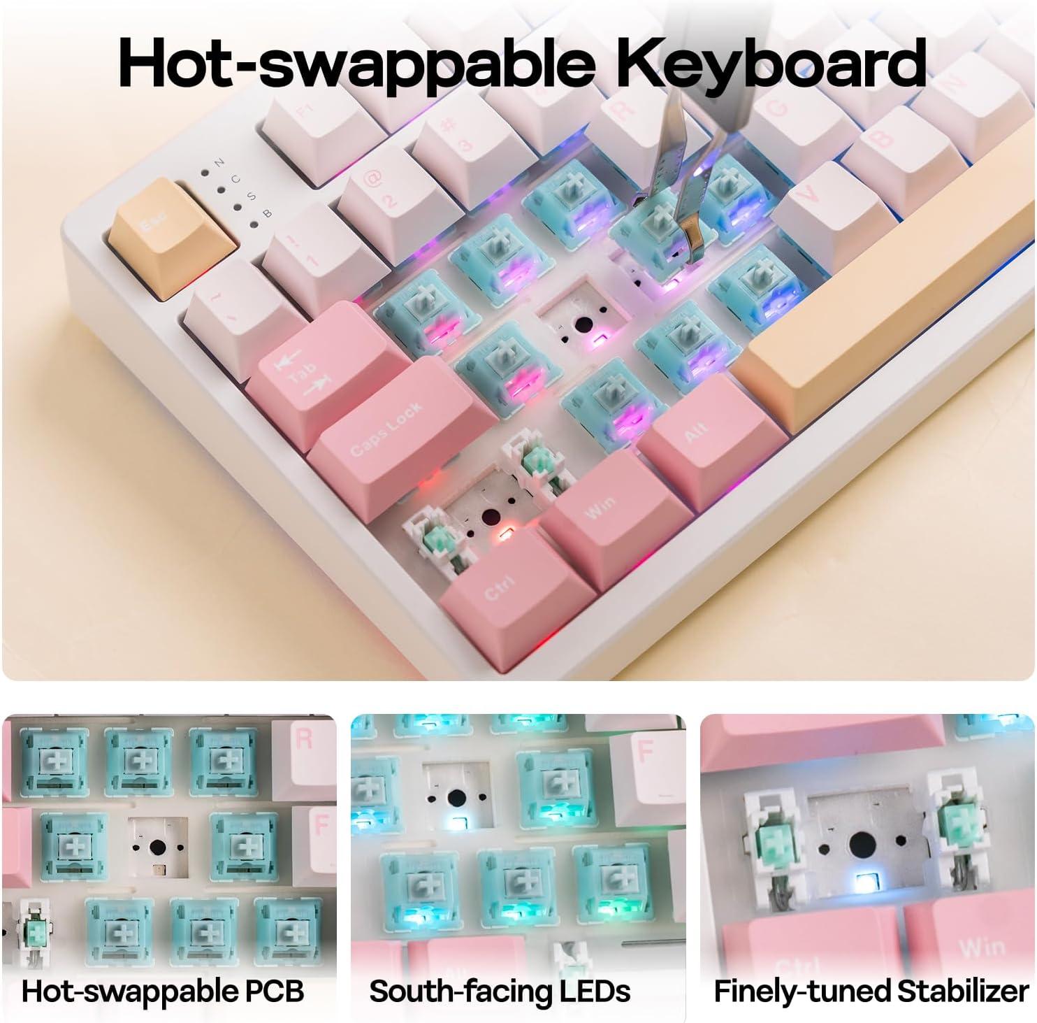 Long-Lasting Wireless Keyboard: Liberate your setup with the ultimate freedom of a stable wireless keyboard boasting the outstanding 8000mAh battery. Unlocking a realm of unrestricted movement and sustained performance with this tri-mode wireless keyboard, without frustrating cable drag hindering swift mouse movements, for seamless transition between up to 5 paired devices under cable, 2.4Ghz and Bluetooth modes. PC, Mac laptop, Android tablet or gaming console, whichever devices you game on, the 160-hour wire-free battery life make inconvenient mid-game recharge a worry in the past.