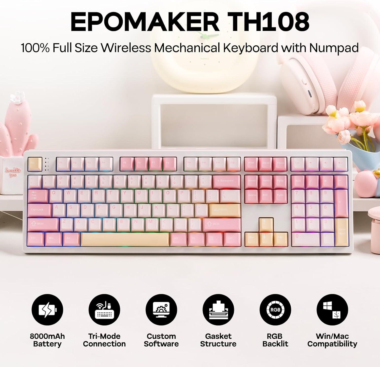 Be the first to review “EPOMAKER TH108 Full Size Mechanical Keyboard, Wireless Gaming Keyboard with 8000mAh Battery, Creamy Gasket, 108 Keys, Hot Swap, Custom Driver, RGB Backlight (Blue&White, Sea Salt Silent)(Pink)”