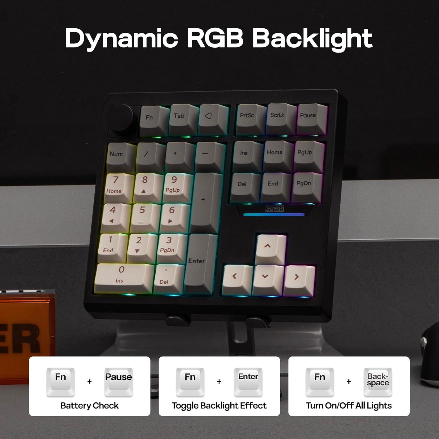 Multi-function Wireless Numpad: Elevate your efficiency with the TH33 numpad, your ultimate desktop companion. Swiftly balancing spreadsheets or quickly checking figures mid-game, the TH33 keyboard features essential keys like the Delete, Home, END, INS, PS, PGUP, PGDN and etc. for productive gaming and work. Connect and switch between up to 5 paired devices, the TH33 Numpad supports Bluetooth 5.0, 2.4GHz, and Type-C wired connectivity.