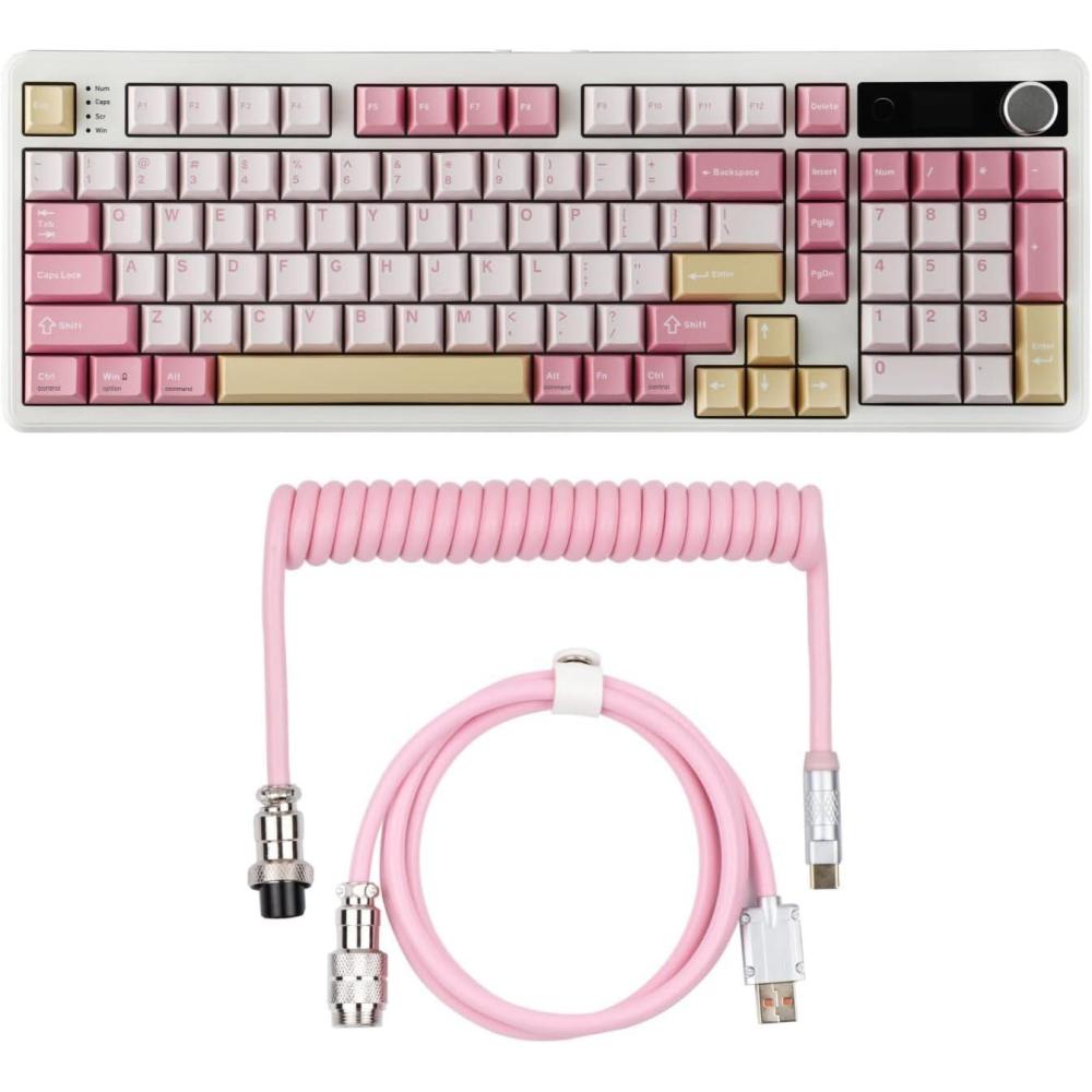 EPOMAKER TH99 PRO 96% Mechanical Keyboard with Screen & Knob+Puff Aviator Coiled USB Cable