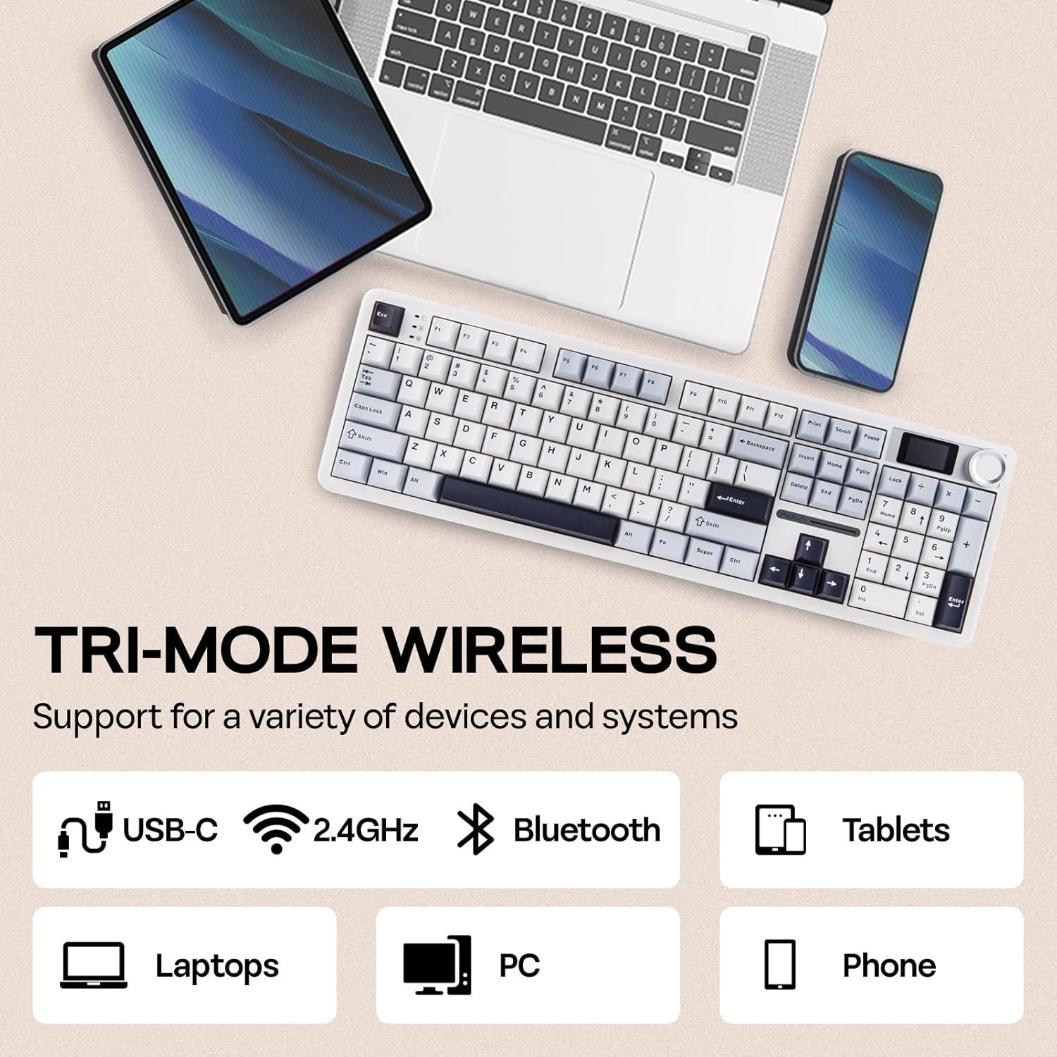 EPOMAKER X Aula F108 PRO Wireless Gaming Keyboard with Screen, 8000mAh Battery, 104 Hot-Swappable and Programmable Keys and Knob, RGB Backlight, for Mac/PC/Android (Black Gradient)(Blue&White&Black)
