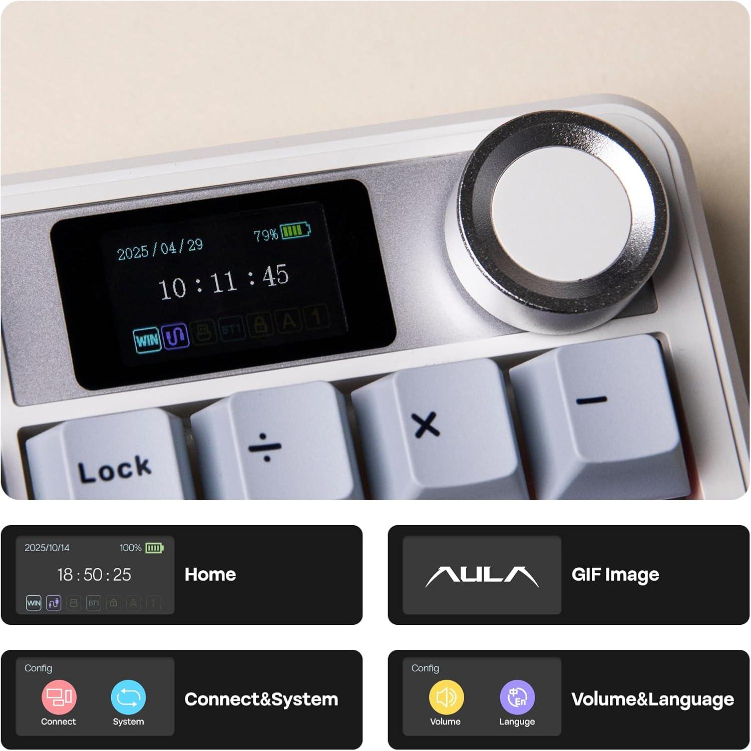 Customizable Screen & Volume Knob: Perfect for work with a dedicated numpad and premium ergonomic typing experience, the F108 PRO features a customizable screen and convenient knob that get the keyboard stands out among other gasket mechanical keyboards. Not just for show, this 1.14-inch LCD screen works as an intuitive control hub for RGB adjustment, displaying keyboard’s vital information, and double as the space for you to bring out your uniqueness with powerful software. Whether you’re crunching numbers, typing reports, engaging in group chat discussions, the F108 PRO keyboard elevates your workspace efficiency and aesthetics with productivity, comfort and creativity