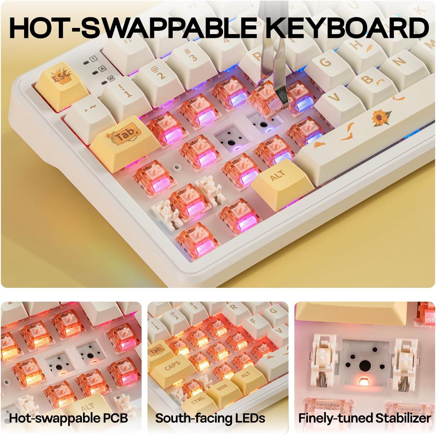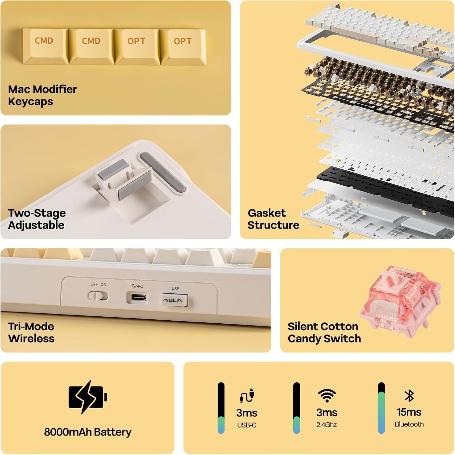 Acoustic Mastery with Satisfying Creamy Sound: Boasts a five-layer sound and shock-enhancement internal design, the F108 PRO keyboard brings the satisfying tranquil switch asmr to your desk. The sophisticated interior layer design features PO Sandwich Foam, PO Switch Pad, PET Sound-Enhancement Pad, PO Bottom Foam and Bottom Silicone as shock absorber and muffler, reducing typing noise and resonance for hushed and quiet switch sound, exceptional for focused tasks at office and immersive gaming at home