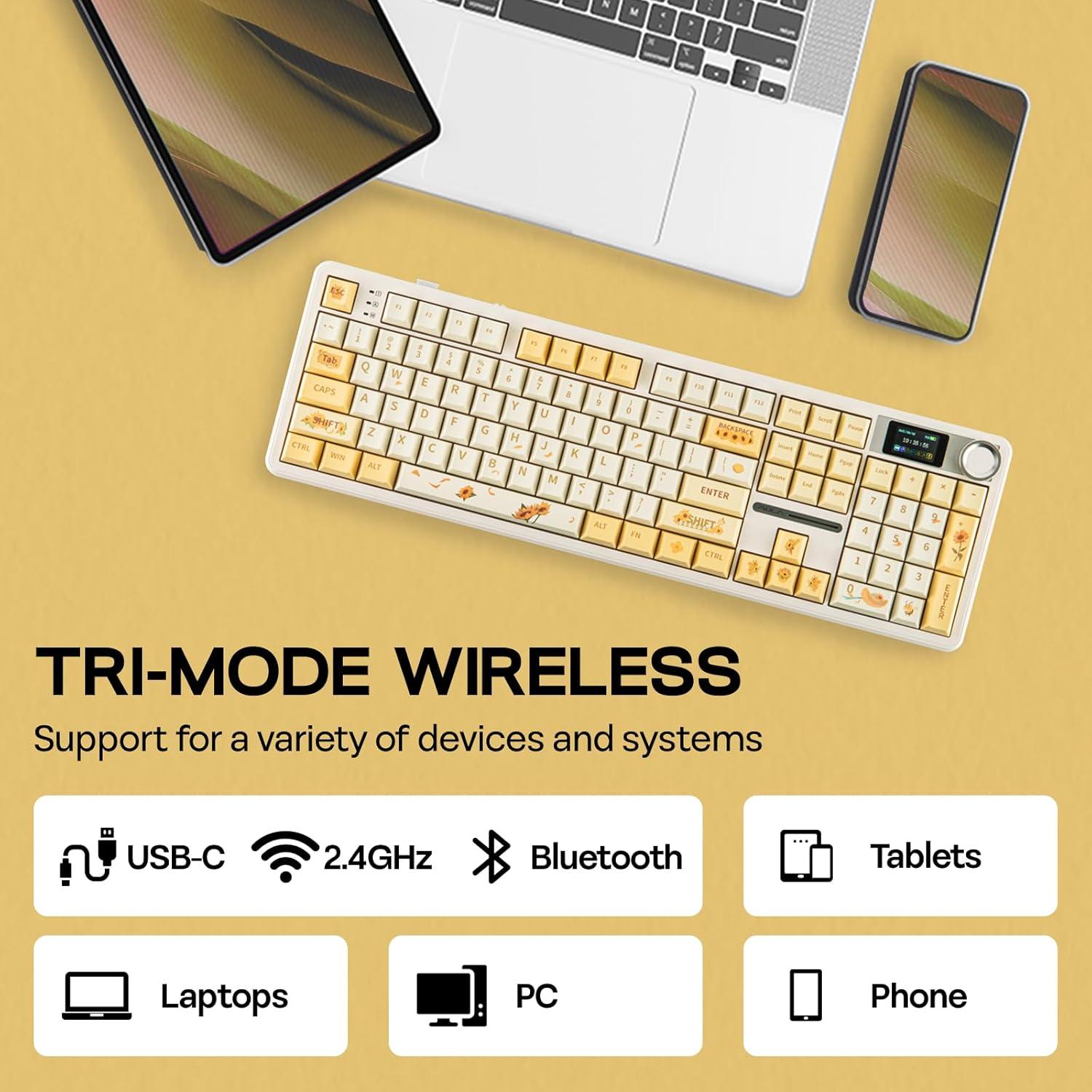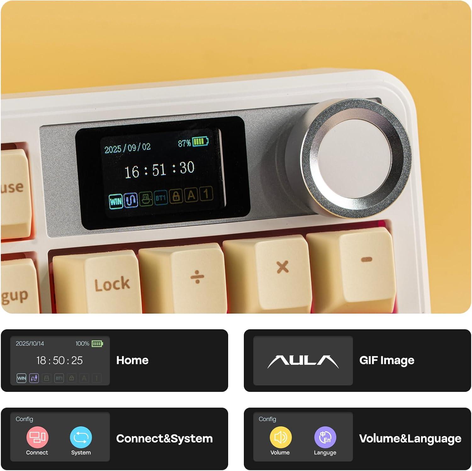 100% in Size, Performance and Comfort: Meet the 100% full size variation of the EPOMAKER X AULA F75 Max, the F108 PRO Mechanical keyboard that offers the same creamy sound and unparalleled performance as F75 Max but in upgraded full-size layout with customizable Screen. The 104 anti-ghosting keys deliver accuracy and greater possibilities in configuration and controlling, ideal for multitasking and fast response in gaming and office. While the 2-stage kickstand, low front height and cherry profile keycaps rid you of finger fatigue and wrist strain for a pain-free day of work