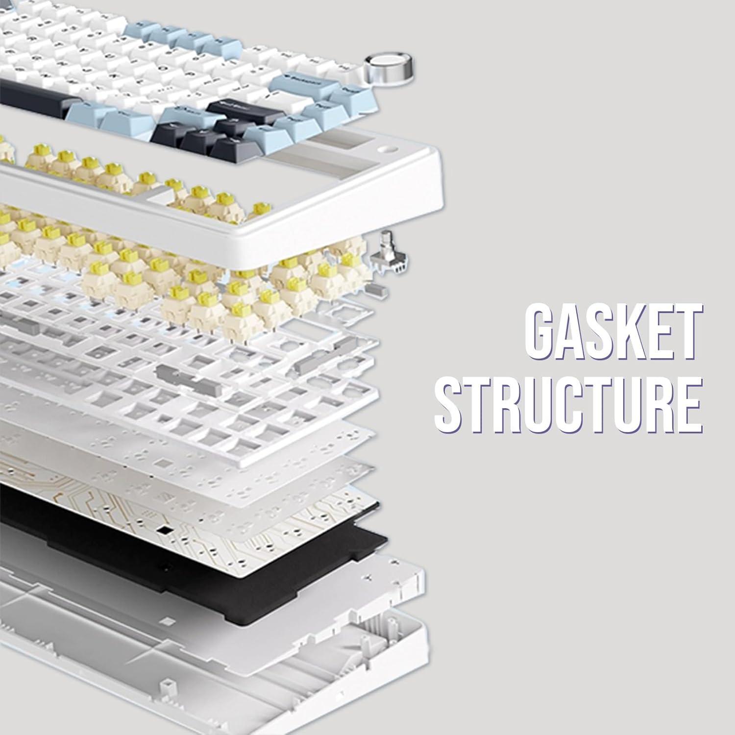 【Optimized 75% Compact Layout&Innovative Gasket Structure】The F75 redefines space efficiency with its 75% compact layout. This design integrates all the essential keys in a smaller footprint, making it perfect for streamlined desks and mobile setups without sacrificing functionality. Experience the pinnacle of comfort with the gasket structure. This advanced design ensures a flexible yet firm typing experience, reducing fatigue during prolonged use while maintaining a consistent and responsive key feel.
