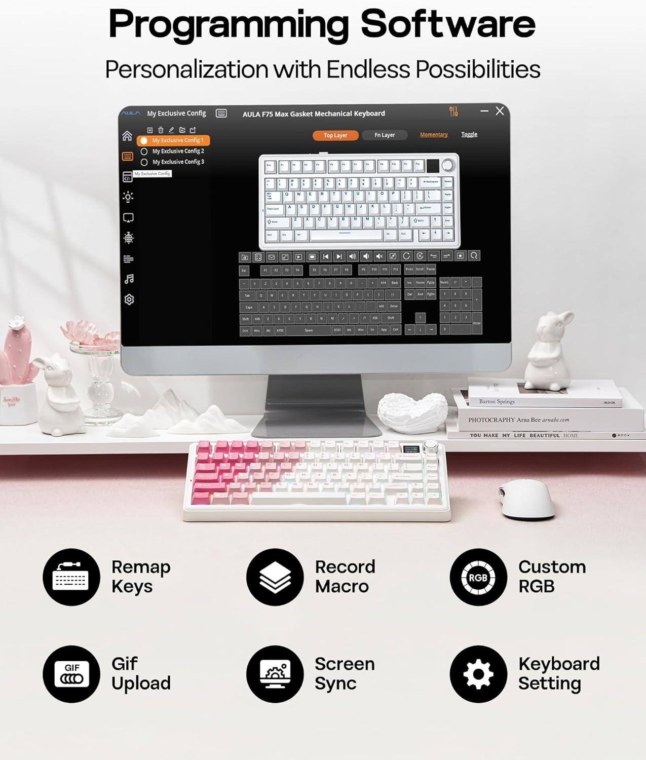 Be the first to review “EPOMAKER X Aula F75 MAX Wireless Mechanical Keyboard with TFT Screen and Knob, Gasket Keyboard in 75% Layout, Hot Swappable Gaming Keyboard for PC/Mac/Linux (White Pink)(White Pink)”