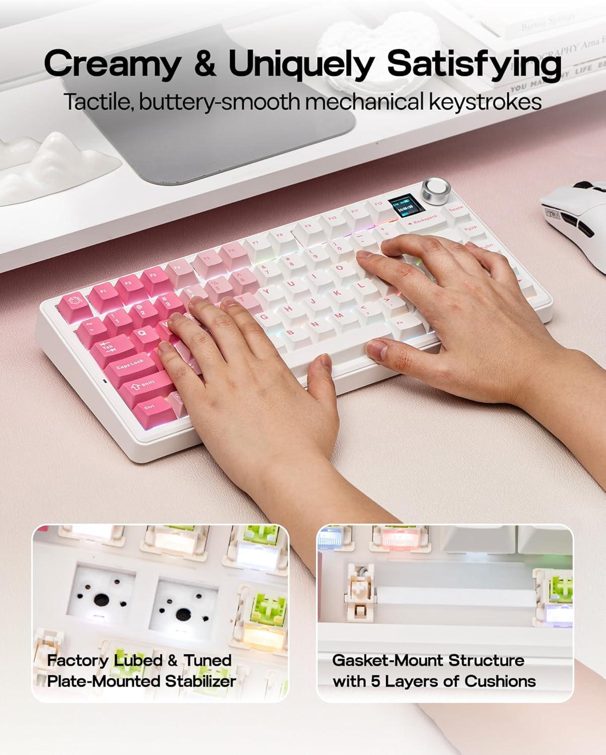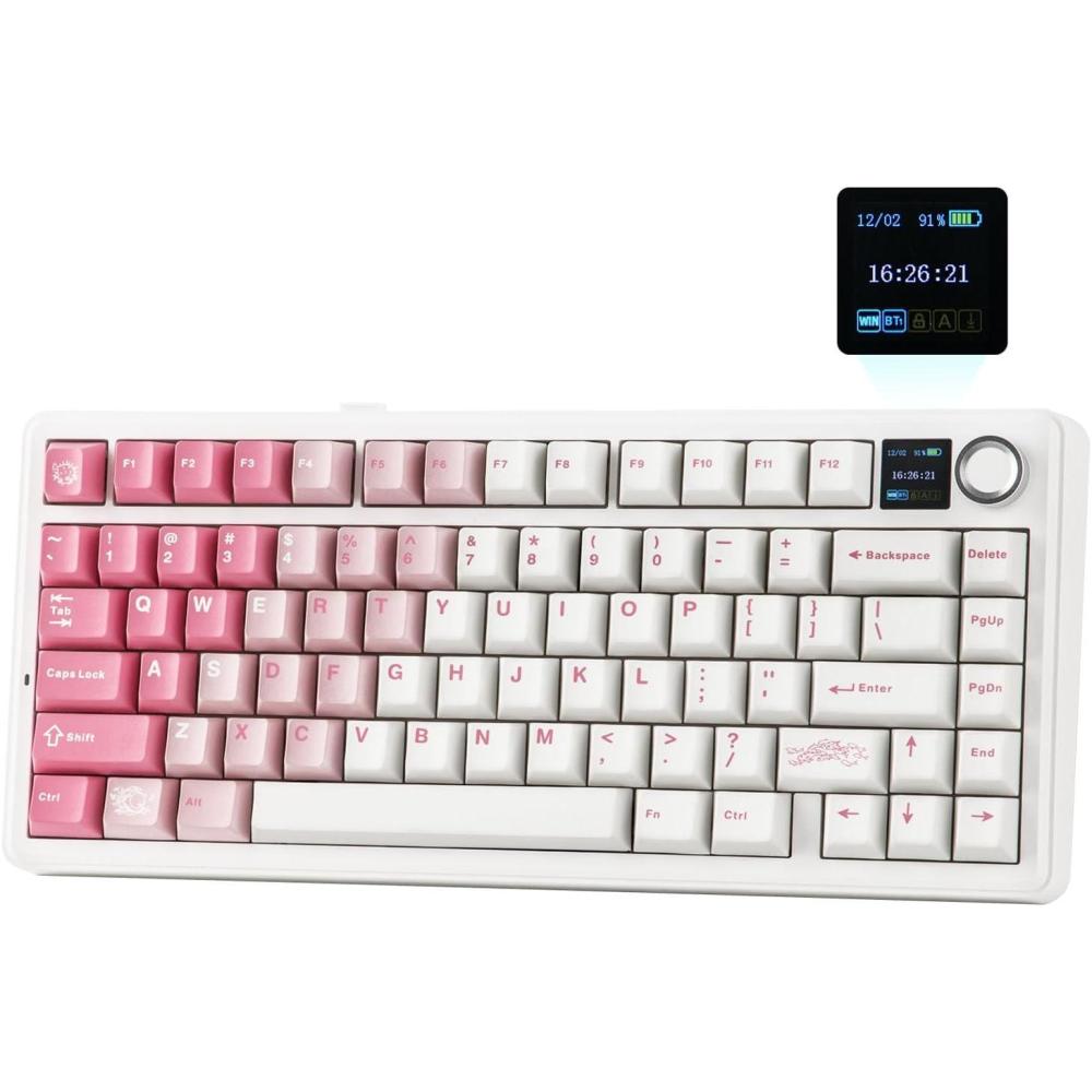 EPOMAKER X Aula F75 MAX Wireless Mechanical Keyboard with TFT Screen and Knob, Gasket Keyboard in 75% Layout, Hot Swappable Gaming Keyboard for PC/Mac/Linux (White Pink)(Caramel)