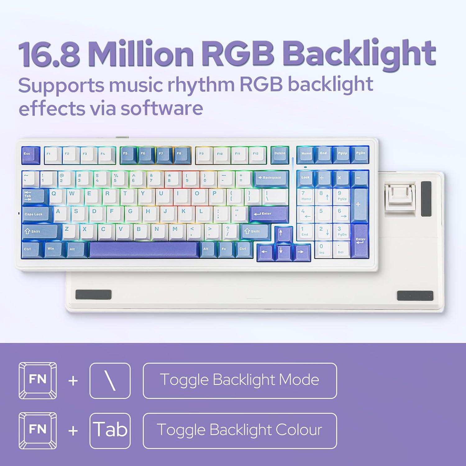 【96% Layout&Gasket Mounted Structure】A 96% layout keyboard with 99 keys can help you save more space on your desk, while keeping the arrow keys and number pad you need for games and work. The F99 gaming keyboard gasket-mounted design, complemented by an extended one-piece silicone pad, delivers unmatched typing resilience and stability. This soft elastic structure ensures each keystroke is both softer and more responsive.