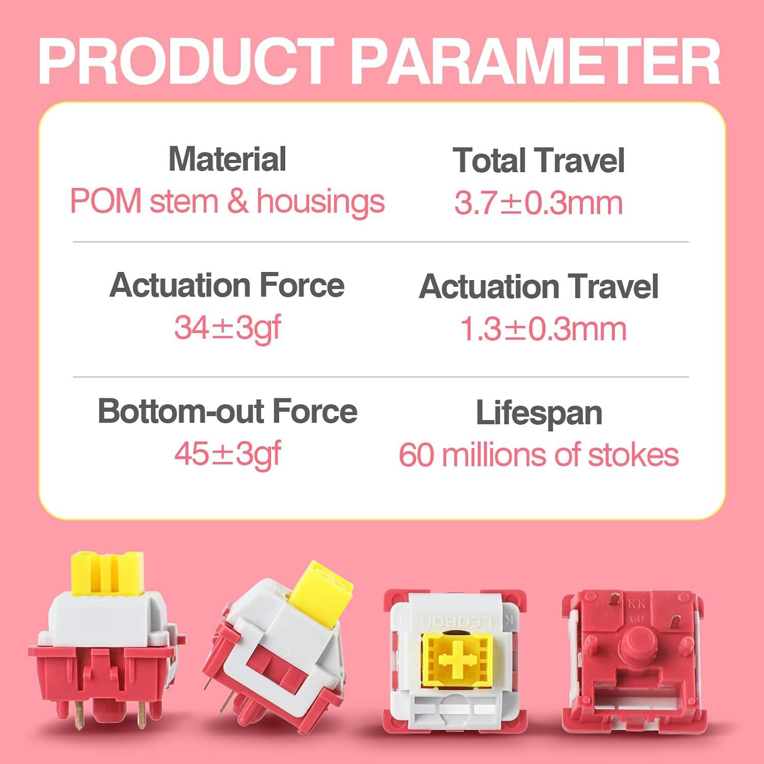 【EPOMAKER x LEOBOG Nimbus Switch V3】Dive into a vibrant typing experience with the LEOBOG Nimbus Switch V3. Decked out in red and white with a pop of yellow, these switches start off light at 28gf and smoothly ramp up to a gentle bottom-out at 45gf. You'll enjoy a soft touch with each press, making your keyboard a joy to use for both work and play.