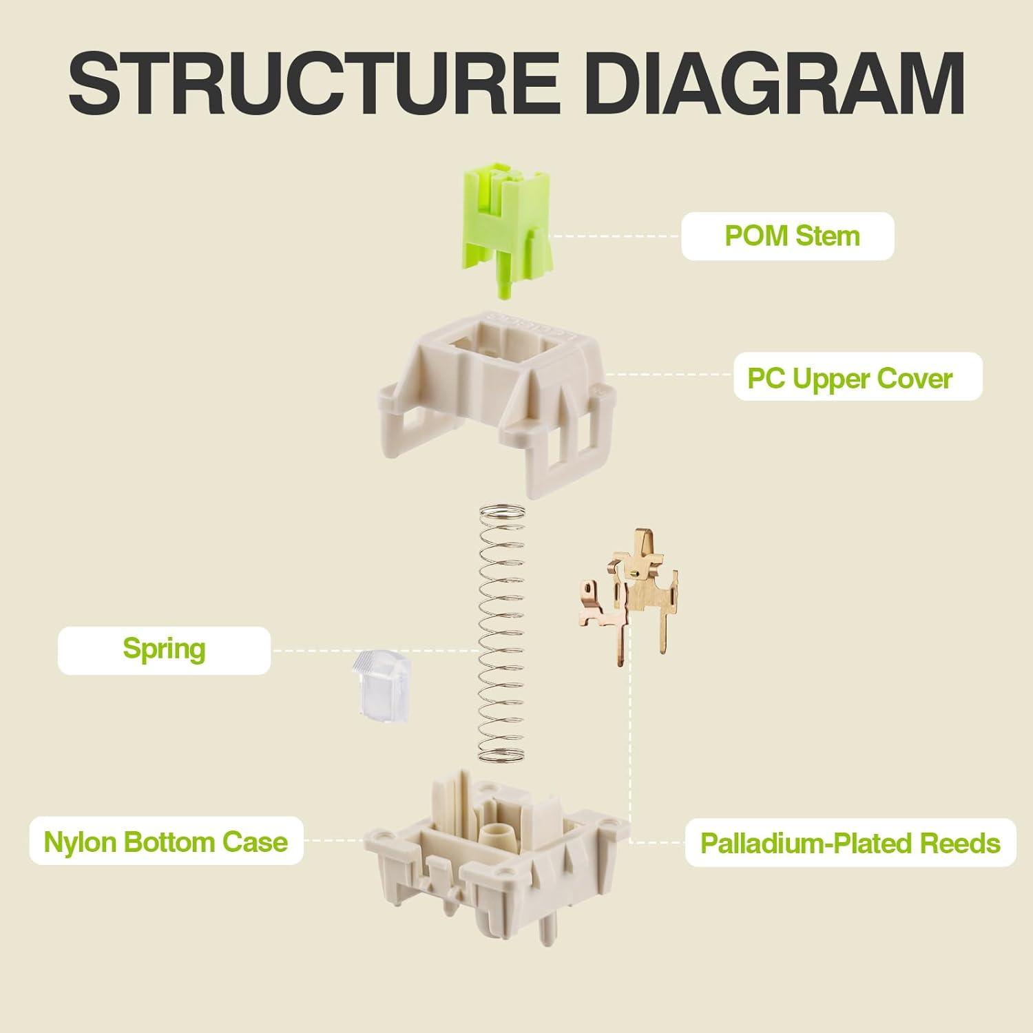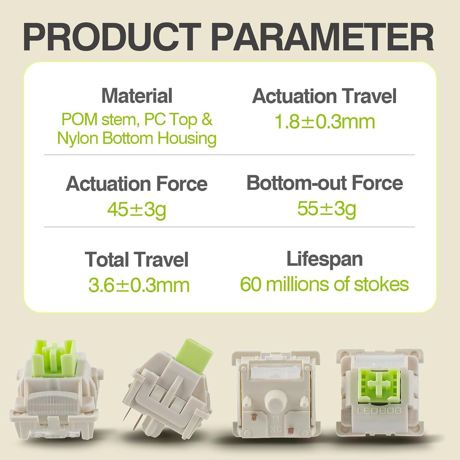【COMPATIBLE WITH MX STRUCTURE KEYCAPS】The LEOBOG Reaper Switch are designed to be compatible with the general MX structure, fitting most keycap sets with an (X) cross stem. This feature enhances their versatility, allowing for easy switch replacement and keyboard customization.